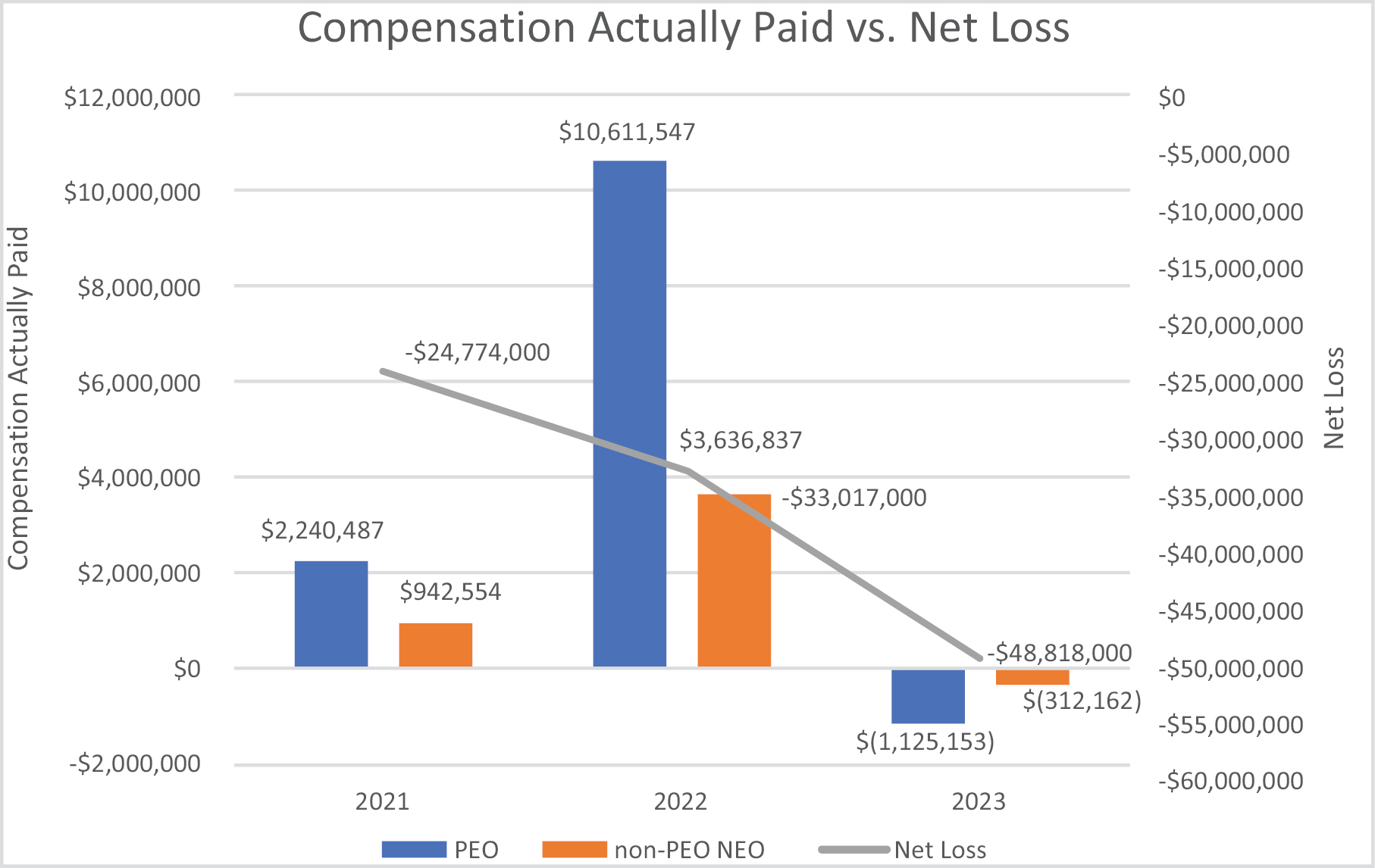 The following graph illustrates the relationship of the CAP for our PEO and non-PEO NEO, as calculated pursuant to SEC rules, to our net loss over the three years presented in the Pay Versus Performance table.